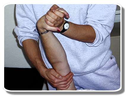 Ausnutzung natürlicher Bahnungs- und Hemmungs-Mechanismen des Nervensystems, zur Behandlung gestörter Bewegungsmuster. Unsere Bilder zeigen die PNF-Technik (propriozeptive neuromuskuläre Fazilitation). Weitere Beispiele neurophysiologischer Verfahren sind die Methoden nach BOBATH oder nach BRUNKOW.