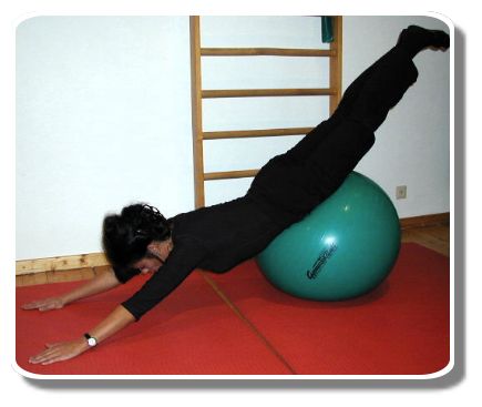 Beseitung muskulärer Dysbalancen, Mobilisation oder Stabilisierung der Wirbelsäule durch therapeutische Übungen. Oben sehen Sie eine Übung der funktionellen Bewegungslehre FBL: "Esel streck' dich!"